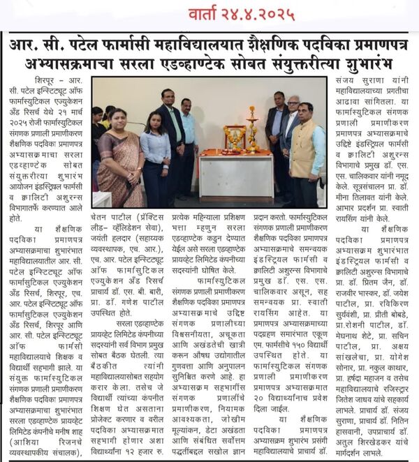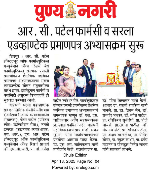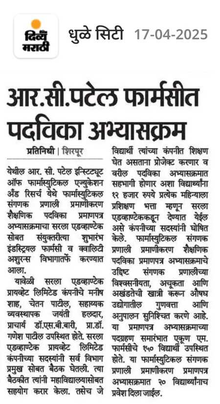 R. C. Patel Institute of Pharmaceutical Education & Research, Shirpur